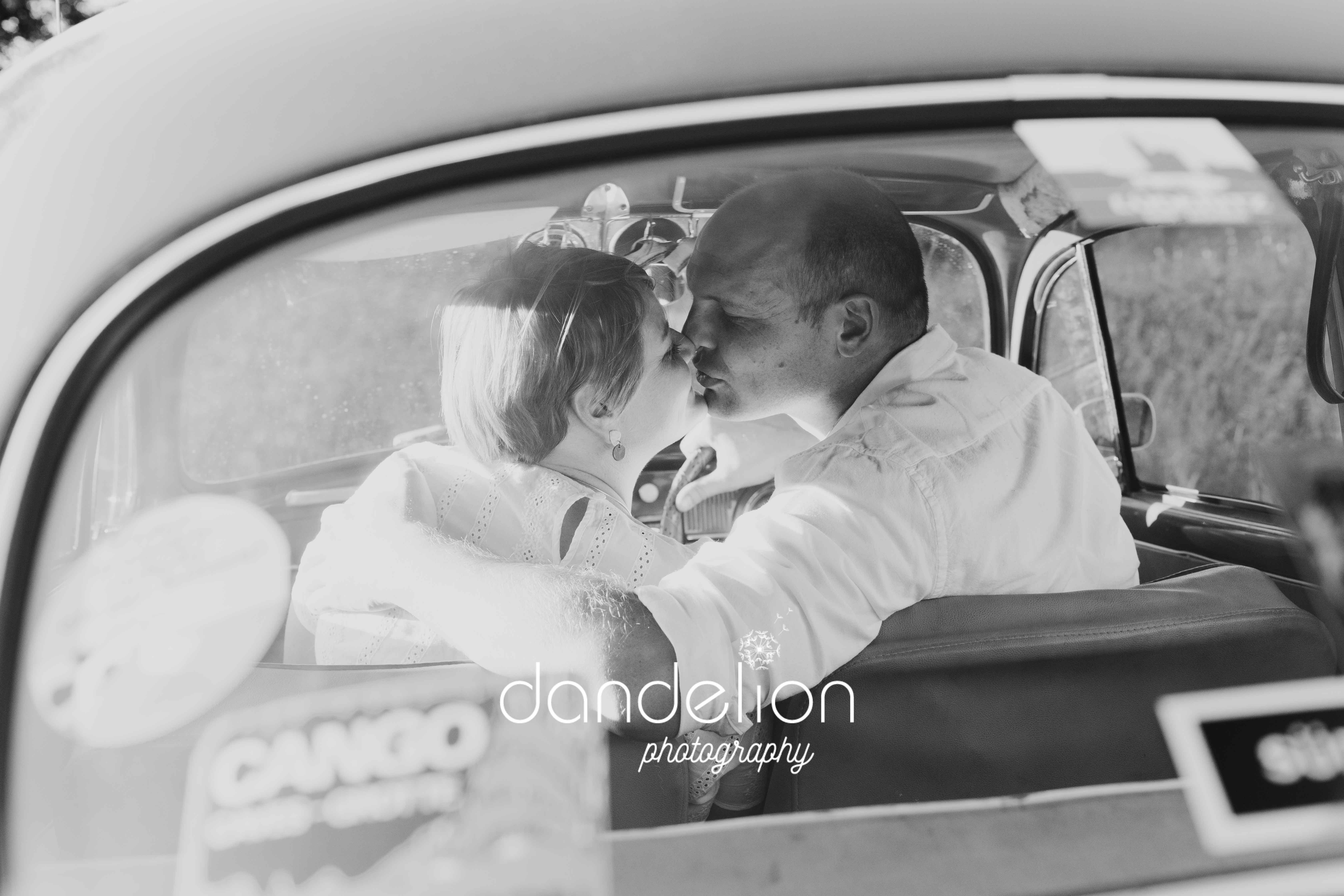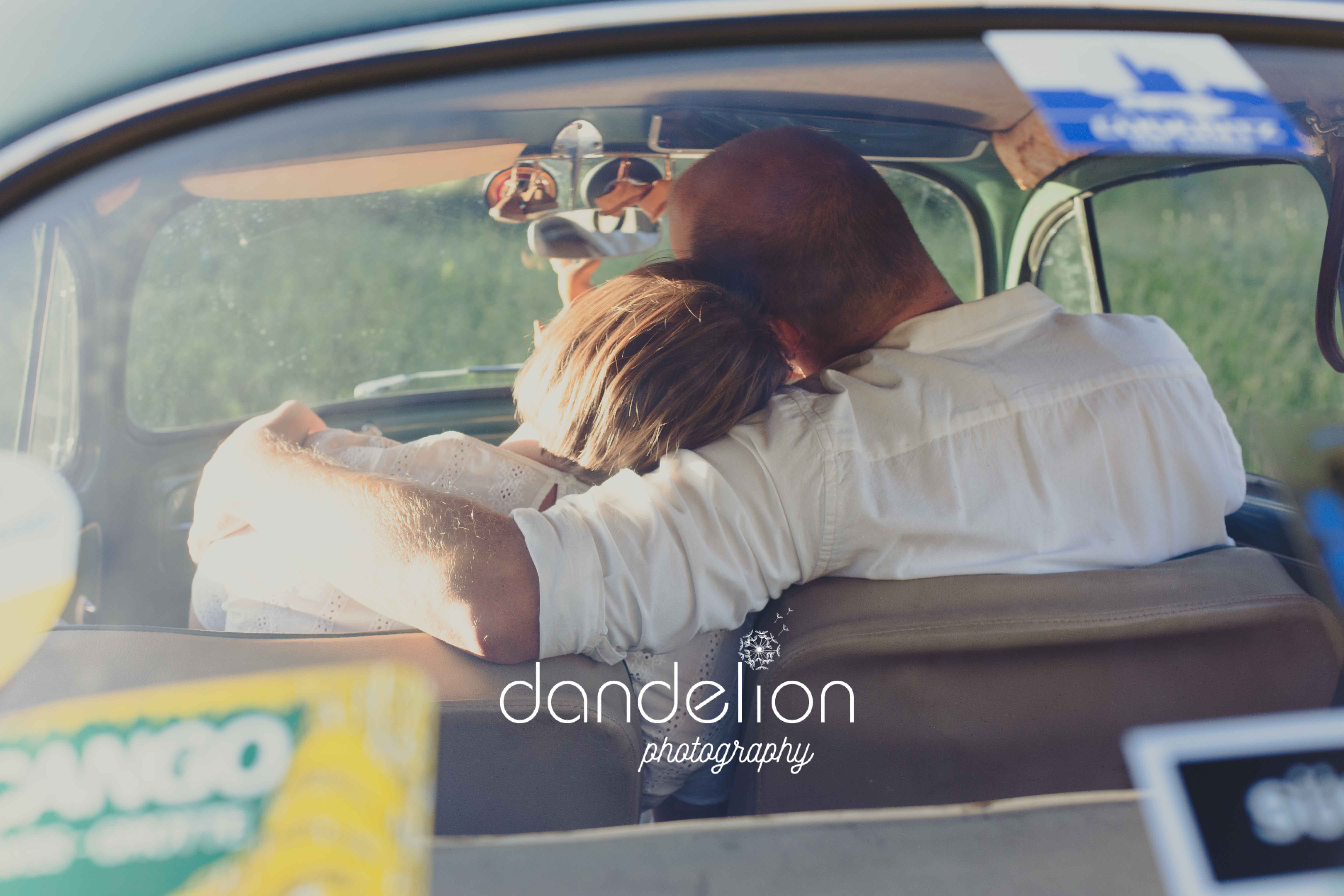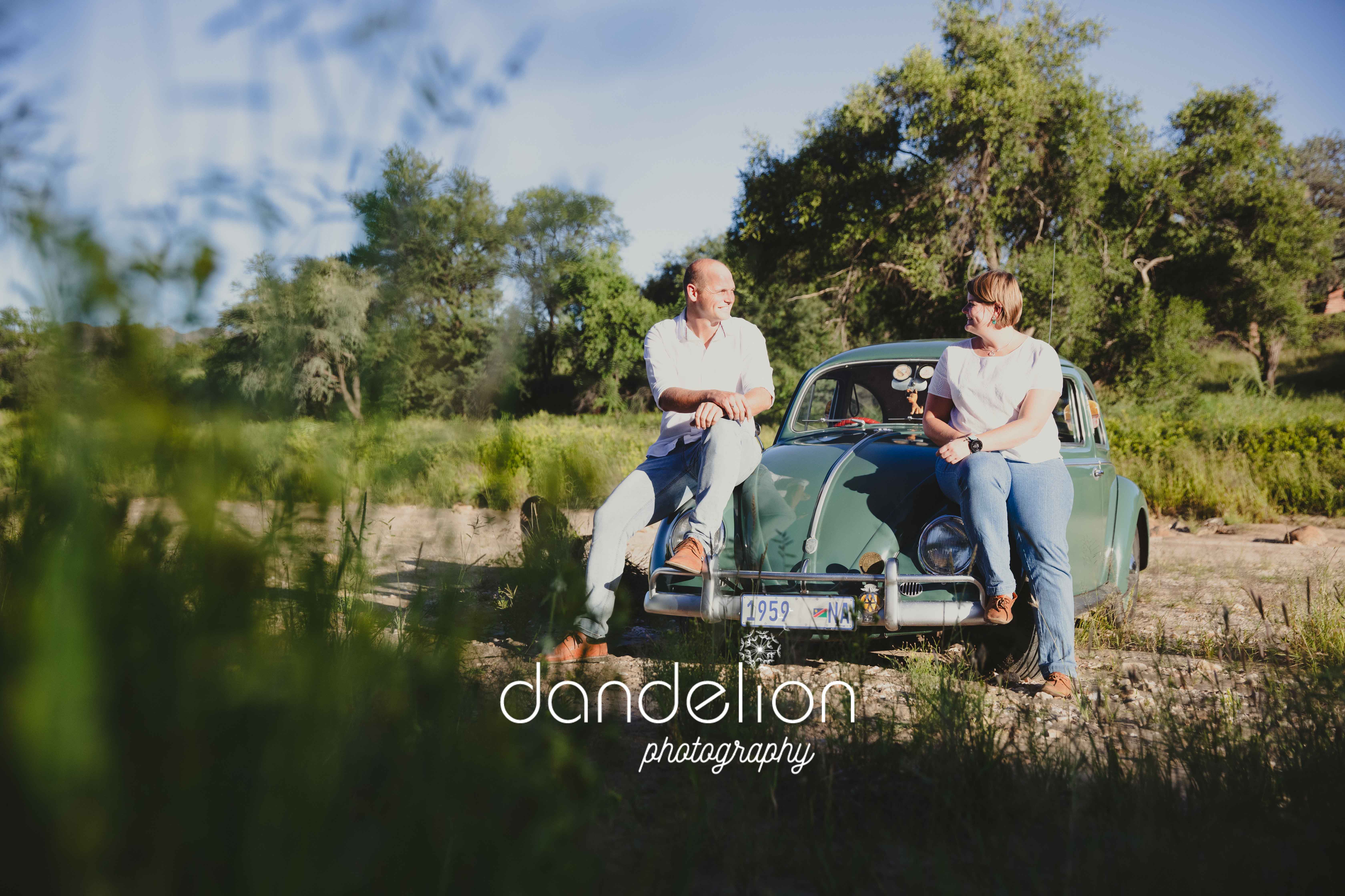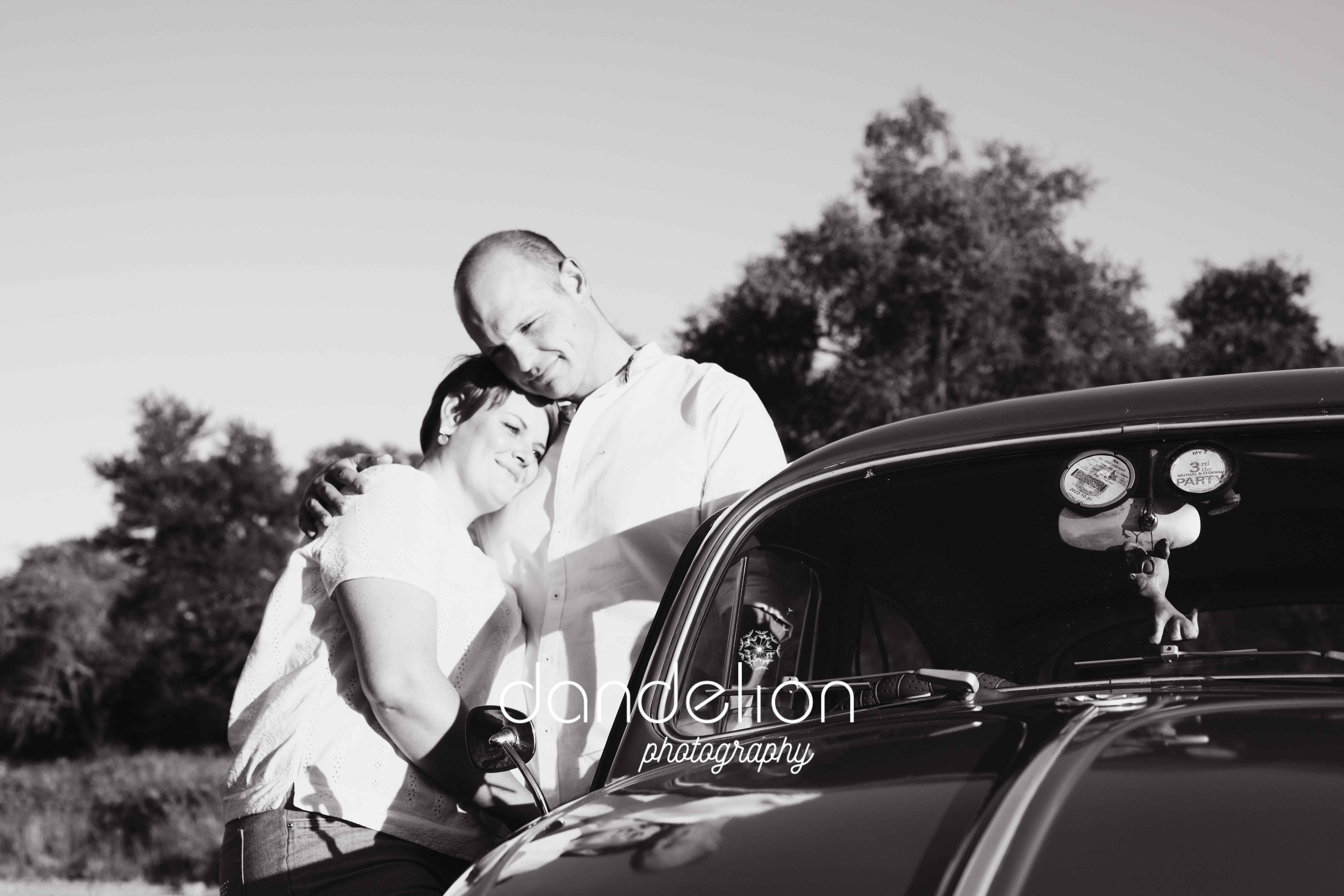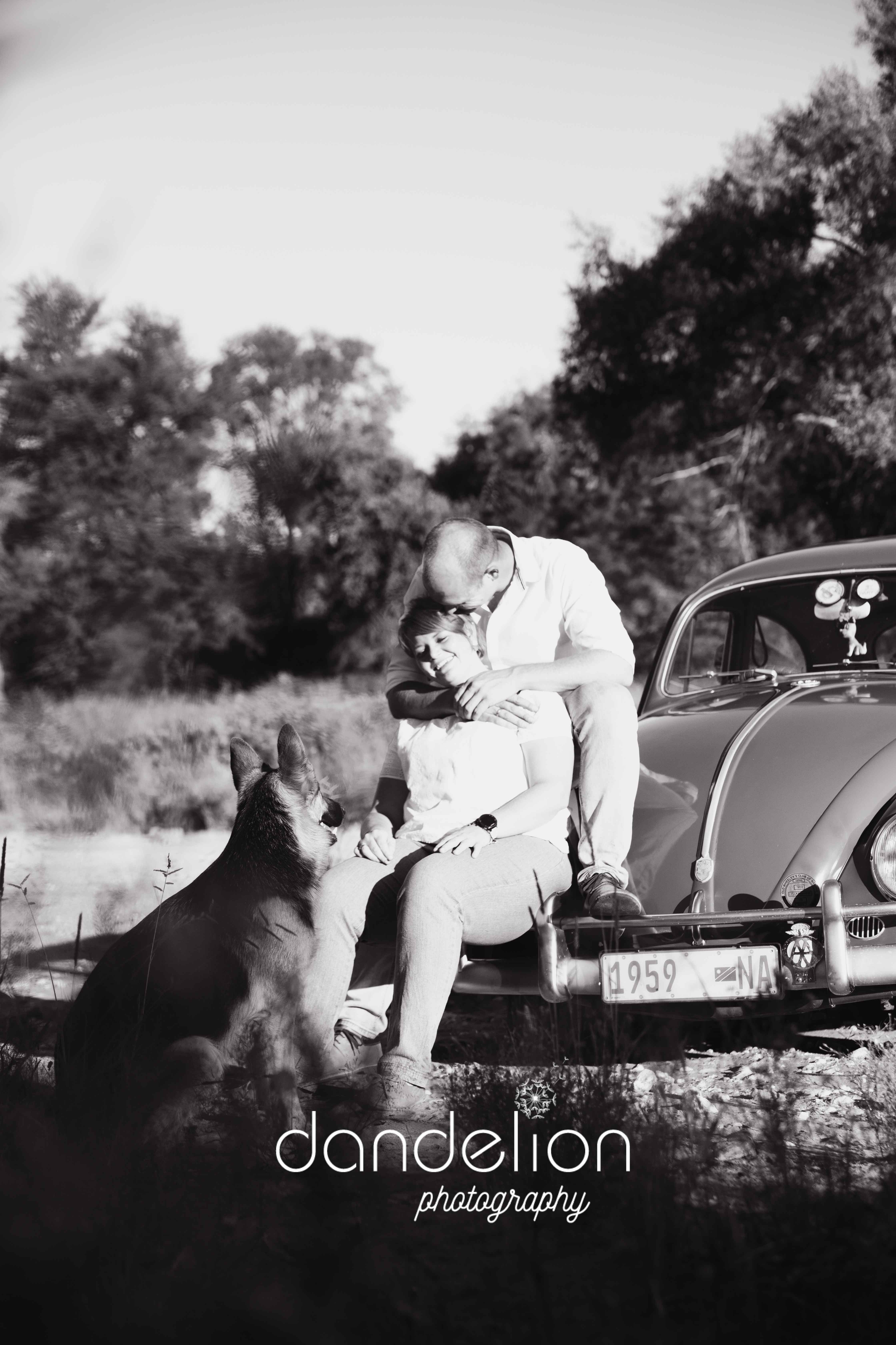 Sweet couple + beautiful vintage VW Beetle, what a perfect combination; oh and of course their beloved German Shepard Finja was part of the fun Photoshoot.