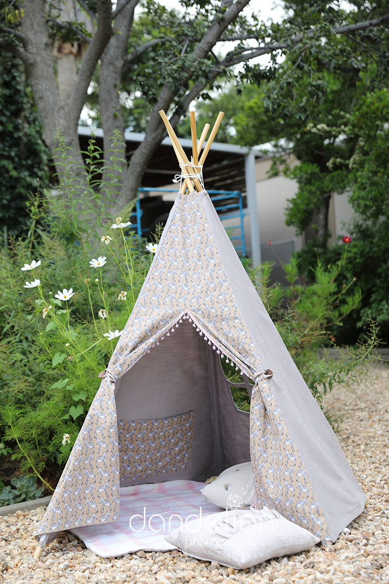 Talented Ginta makes these unique beautiful Tipis by hand. The FUN photoshoot took place in the magical garden of Ginta’s in-laws. The weather played along nicely. In the beginning it was raining lightly and it was cloudy. (Creating a beautiful soft light.) Later the sun rays blinked through the clouds creating an interesting atmosphere. The girls had a wonderful playtime in and out of the Tipis.